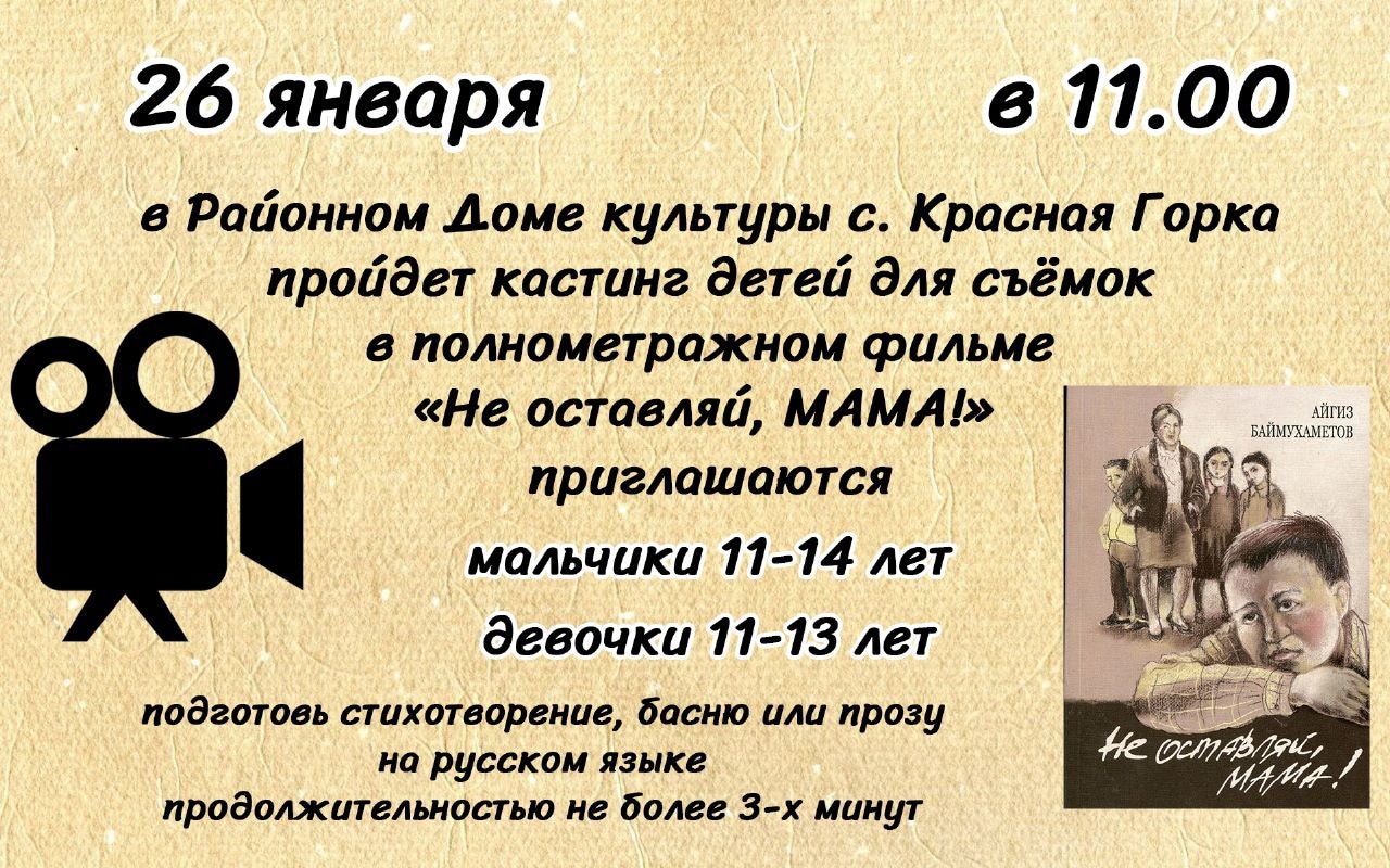 Кастинг детей для съемок в фильме "Не оставляй,МАМА!"