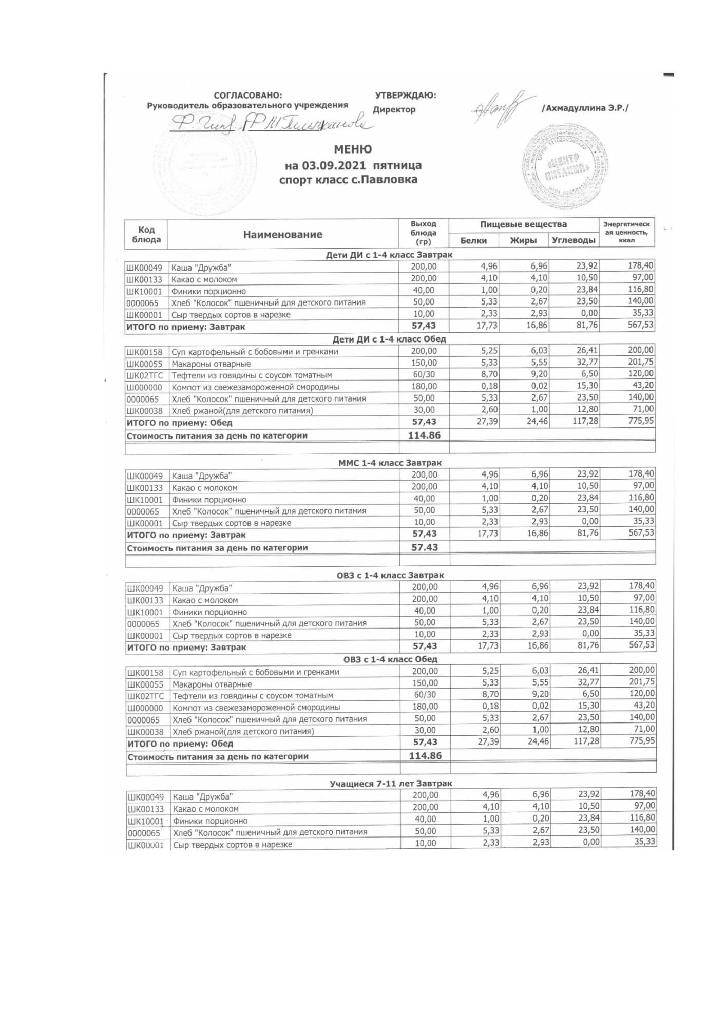 (меню на 03.09.2021г)
