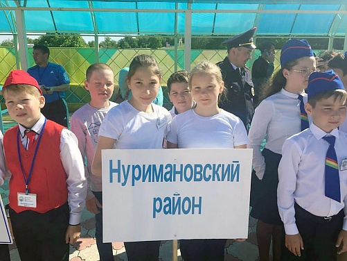 Команда Нуримановского района «Зеленый свет» под девизом «Кто соблюдает правила дорожного движения, тот крутой» проявили свои навыки и умения в командном зачете. В течение трех дней ЮИДовцы соревновались по конкурсам «Знатоки правил дорожного движения», «Автогородок», «Фигурное вождение велосипеда», «Основы безопасности жизнедеятельности» и в творческом конкурсе «Вместе за безопасность дорожного движения».