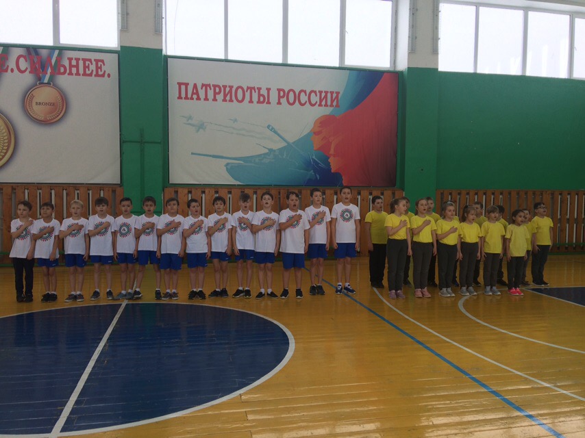 Участники проекта «Здоровое поколение- сильный регион». Под гимн России прошло открытие соревнований. Соревнования проходили между 2-3 спортивными классами.