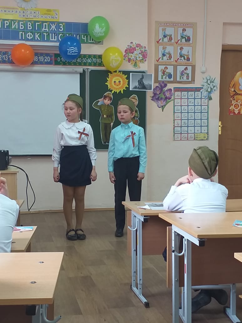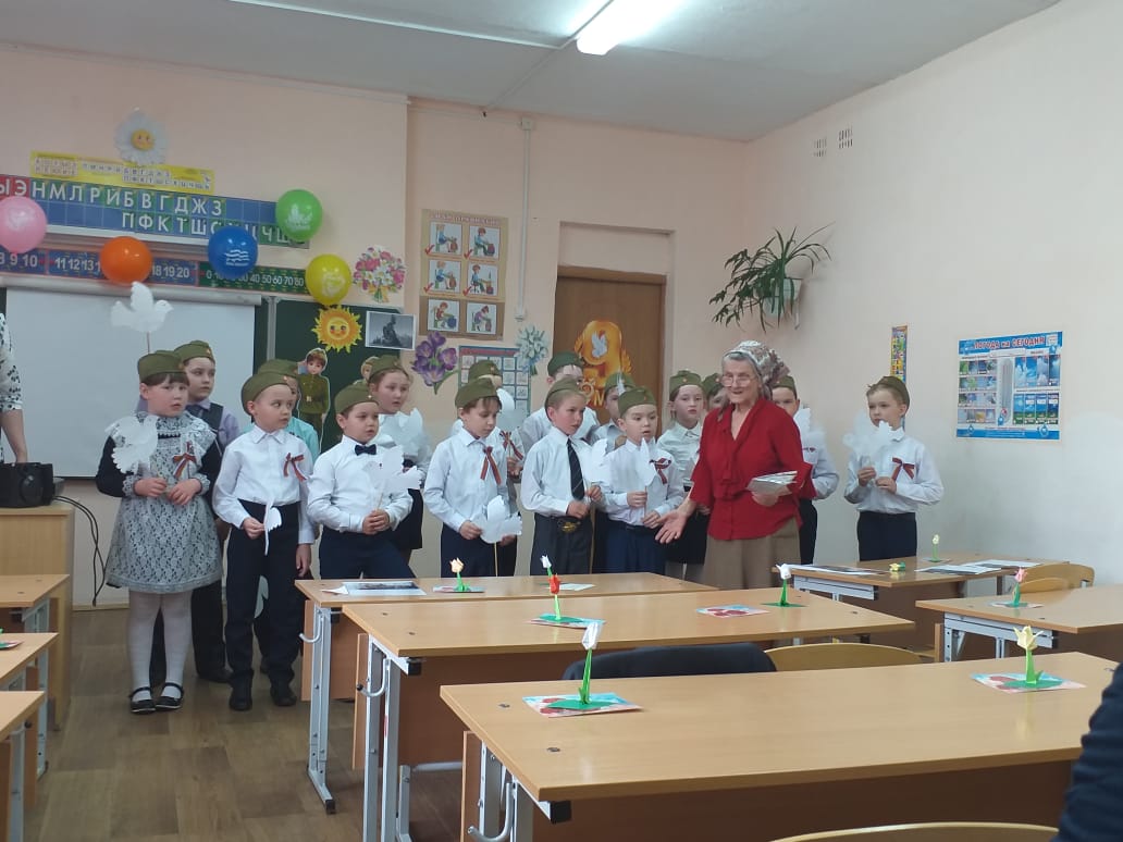 6 мая в 1в классе прошло мероприятие "9 мая - День Победы". Началось оно роликом об объявлении Великой Отечественной войны знаменитым голосом Левитана и песней "Священная война". Затем дети познакомились с Героями Советского Союза - нашими земляками: М.Сыртлановой, Н.Ковшовой, М., М.Гареевым, А.Матросовым и М.Губайдуллиным. В исполнении родителей прозвучала песня "О той весне". Минутой молчания почтили память павших воинов. Затем учитель Якупова О.И. исполнила под гитару песню "Журавли". Мероприятие закончилось песней "Пусть всегда будет солнце", один куплет которой был исполнен детьми на английском языке. затем после поздравления бабушки Г.С. дети подарили своим родным открытку и сувенир, сделанный своими руками.